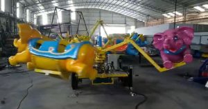 oducing the Flying Elephant Kiddie Ride, a delightful and adorable attraction designed especially for young adventurers! This charming ride hold up to 8 kids at a time, allowing them to experience the joy of gentle flight. Each child sits in their own colorful elephant, and chute, which gracefully lifts them into the air and glides them around. Perfect for little ones, the Flying Elephant Kiddie Ride promises a magical and memorable experience filled with smiles and laughter!